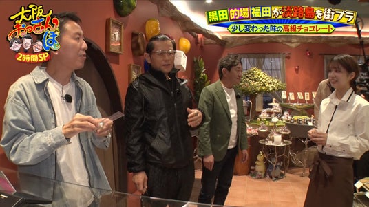 続いておっさんたちは淡路島西海岸の新スポットへ。チョコレート工場「VIE CHOCOLAT」を案内すると、的場は「かわいい~!」とハイテンションに! 西海岸は近ごろ新しい店が増えているそうで、「ほんまは5泊6日ぐらいで来てほしい」と黒田。