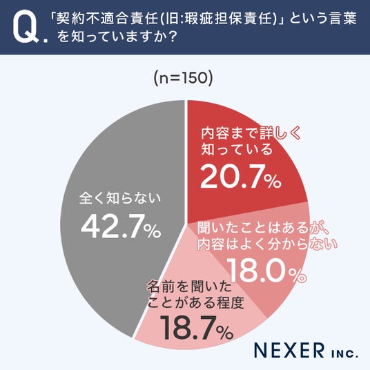 「名前は知っているが、仕組みはよく分からない」と答えた方も18.7%おり、全体の約8割が契約不適合責任免除のメリットを十分に理解できていない状況が明らかになりました。