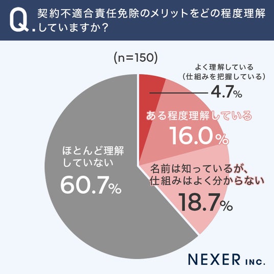 こうした状況が、契約不適合責任免除のメリットが十分に理解できていない一因になっていると考えられます。