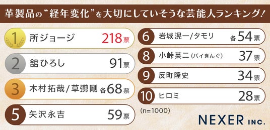 株式会社NEXER・革製品の“経年変化”を大切にしていそうな芸能人に関する調査
