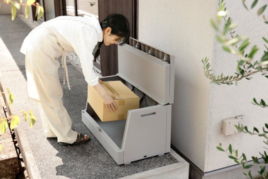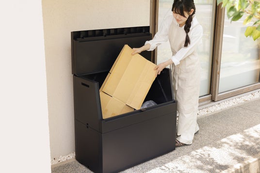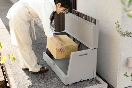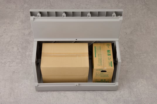 マルチな使い方ができる屋外ストッカー。特に宅配ボックスの用途に最適です。120Lサイズはコンパクトなのに大容量、玄関横に設置しても邪魔になりにくいです。