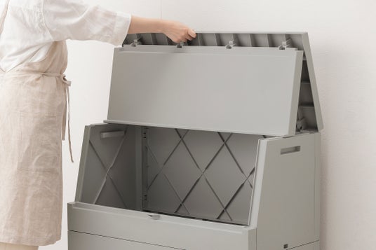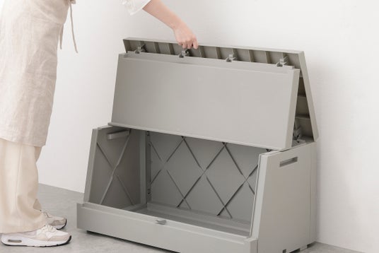 奥行45cmで場所を取らない薄型設計。フタが二つ折りに開くので、狭いスペースでも手前側が広く取れて作業がしやすくなります。ゴミ箱だけでなく簡易物置や宅配ボックスとしてのご使用にも最適です。盗難対策として、南京錠を取り付ける鍵穴や固定できるワイヤー穴を設けているので、宅配ボックスとしての活用にも安心してご使用いただけます。
