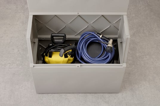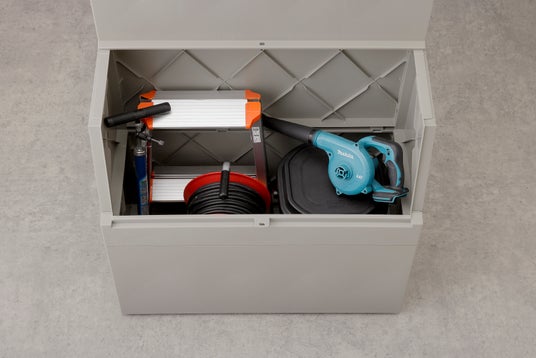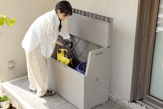 屋外ストッカーは簡易物置としても活用できます。外掃除の道具や子供のおもちゃ、園芸用品など屋外で保管しておきたいアイテムを収納するボックスとしても最適です。120Lは18Lポリタンクがぴったり4つ収納できます。