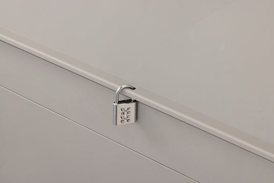 正面には南京錠が取り付けられる鍵穴、側面には固定できるワイヤー穴を設けました。