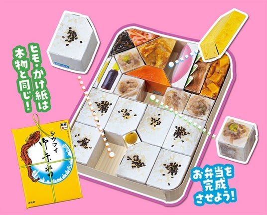 注目は、横浜の名物「シウマイ弁当」に本物そっくりな紙製パズル付録。崎陽軒徹底監修で、その再現性には崎陽軒担当者もびっくり!