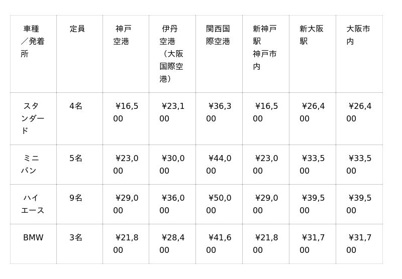 ※関西国際空港・伊丹空港への配車には、駐車場代金が別途必要になります