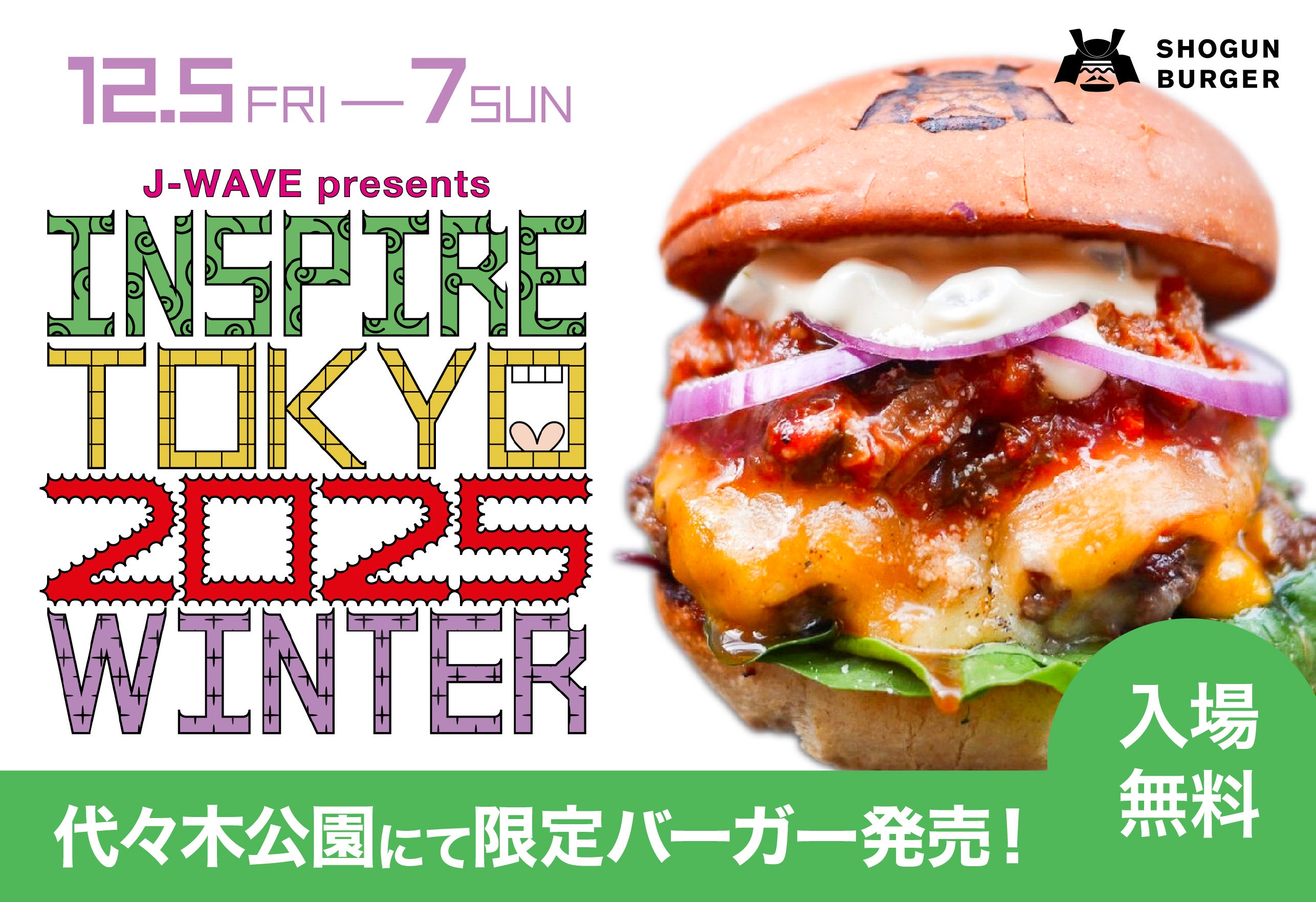 この度、SHOGUN BURGER(株式会社ガネーシャ、本社:富山県)は、ラジオ局 J-WAVE(81.3FM) が主催する都市型カルチャー・フェス「J-WAVE presents INSPIRE TOKYO 2025 WINTER -Best Music & Market-」(以下、「INSPIRE TOKYO 2025 WINTER」)へ出店いたします。