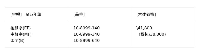 また、ペン先は極細字(EF)、細字(F)、中細字(MF)、中字(M)、太字(B)の5種類の字幅をご用意しています。普段使いはもちろん、ギフトにも最適です。銀座本店のほか、公式オンラインショップで販売予定です。