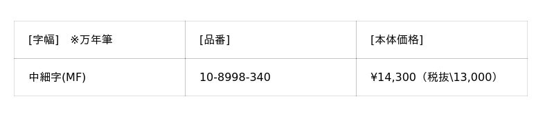 字幅:極細字(EF)、中細字(MF)、太字(B)