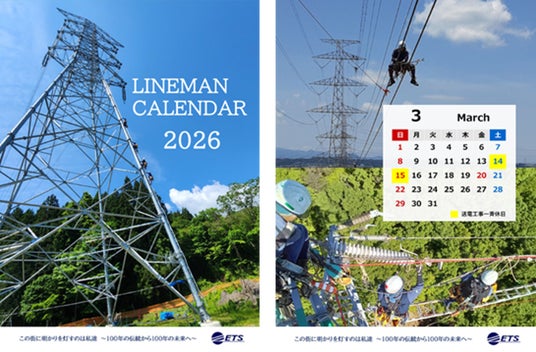 株式会社ETSグループ(東京都豊島区、代表取締役社長:上江州剛、証券コード:253A、以下「当社グループ」)は、毎年ご好評いただいているカレンダー企画を今年も継続し、2026年版ラインマンカレンダーを作成いたしました。本カレンダーは、全て当社社員が撮影した写真を採用しており、送電線工事を担う「ラインマン」や鉄塔など、電力インフラを支える現場の姿を収めた写真を掲載し、当社の事業を身近に感じていただける内容となっております。