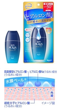 ※4:加水分解ヒアルロン酸、ヒアルロン酸Na、ヒアルロン酸ヒドロキシプロピルトリモニウム(すべてうるおい成分)、※5:スキンアクアシリーズ内において、※6:日やけ止めをこまめにムラなく塗りなおすことで紫外線からのダメージを防ぐ