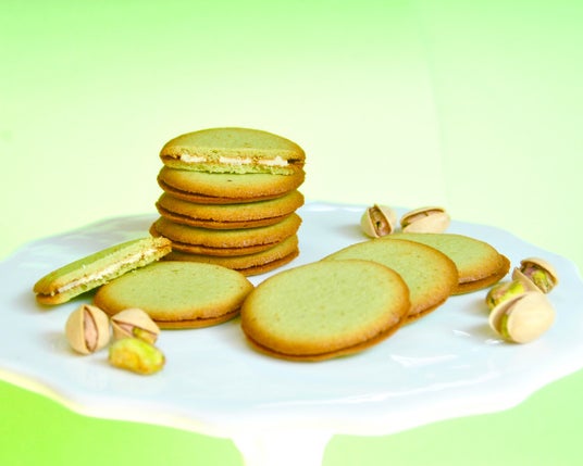 アメリカ産ピスタチオのペーストとパウダーを練り込んだ生地でホワイトチョコレートをサンドしたラングドシャです。