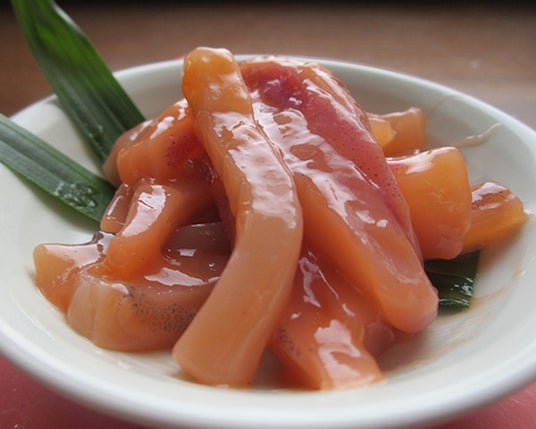 身厚の胴体部分だけを使用した贅沢な塩辛は、海宝の人気商品です。