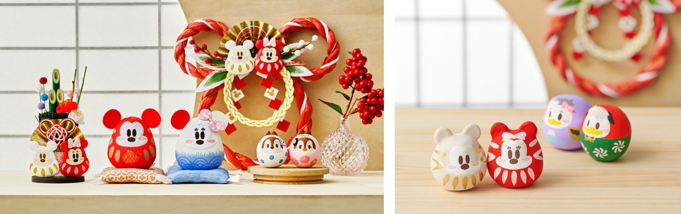 また、「白河だるま総本舗」との共同企画による白河だるまが今年も登場。ミッキーマウスとミニーマウスは紅白のデザイン、ドナルドダックは獅子舞など、キャラクターごとに新年らしいラッキーモチーフをあしらい、見ているだけで心が和むデザインです。