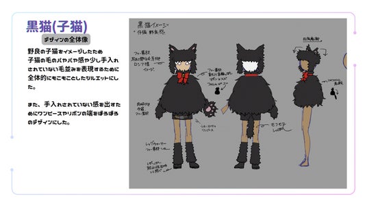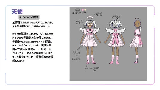 プレゼンテーションの冒頭では、前回の講義を踏まえ、「かかりちょう」氏が自身が何からインスピレーションを得ることが多いのかを分析し、Instagramで行った情報収集の結果を紹介しました。さらに、その情報と与えられたお題を整理し、大きなテーマである「ハロウィン」に、彼女が普段Skyをプレイする中で特に印象深い楽しみとして挙げた「友達とリンクコーデができる」という要素を掛け合わせ、両方を満たすデザインテーマを検討。その結果、導き出したテーマが「魔女と黒猫」と「天使と悪魔」の2つでした。
