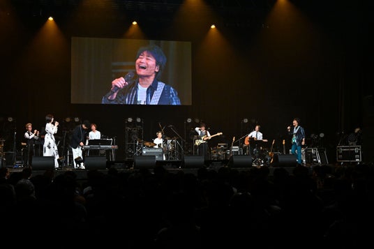 再びPenthouseの浪岡、大島、矢野の3人をステージに呼び込む。黒沢の選曲で「ラブ・ストーリーは突然に」を、根本、Penthouseの3人、黒沢、中西、バンドメンバーでセッション。黒沢は「小田(和正)さんは、クリアテナーじゃないですか。だから、声がガラガラしている人に歌ってほしかった」と、根本と浪岡に視線を向ける。そして「僕は佐藤竹善さんの(コーラス)パートをやりたい!」と語尾強めで主張。コーラス、そして主張。ゴスペラーズの黒沢がちょっとだけ顔を出した。ゲストの矢野とバンドメンバーたちが打ち合わせに入る。その間、ボーカル陣も打ち合わせをしながら「サビの下ハモがいいんですよー」と、黒沢がリスナーに戻ったような言葉を独り言のように呟く様子に、ついつい爆笑してしまった。「ラブ・ストーリーは突然に」は、イントロのギターのカッティングが楽曲を象徴する重要なファクター。ステージ上には、根本、矢野、そしてバンドメンバーの三沢崇篤と、ギターが3人。イントロ誰がやる? どうぞ、いやそちらがどうぞ、みたいなやりとりに大爆笑してしまった。