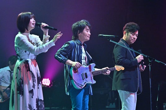 続いて登場したのは、スターダスト☆レビューの根本 要。ギターを肩からさげ「本日はお招きありがとう!」と歌いながら挨拶をした後、根本が披露する曲を告げると、会場から大歓声が起こった。その曲は「今夜だけきっと」。黒沢と中西もコーラスで参加。間奏では、この日、バンドメンバーとして参加していた本間将人のサックスがブロウする。最後は根本が超ロングトーンを響かせ、観客を圧倒した。第7回(2024年7月放送)にゲスト出演した根本。「ミュージシャンが集まって、何かを創ろうという気持ちが前面に出る。予測されたものじゃない楽しさがあった」と振り返る。中西は根本の「調子が良くなくても、その時の声を大事にすれば良い」という言葉が忘れられないと回想。黒沢が「あの時(=第7回)より、3人ともアドリブがうまくできるんじゃないかな。アルノさんは特に」と言うと、根本が「悪い子になってきたね」と中西を見て、会場の笑いを誘う。こんな会話を受け「Bring It On Home to Me」、「ハナミズキ」を続けて披露することに。「Bring It On Home to Me」では、間奏でバンドメンバーが順番にソロ演奏。それぞれのソロが終わるたびに、MC2人と観客から拍手が起こる。締めは根本のギターソロ。ギターで弾いたメロディーと同じメロディーを、オクターブを変えて歌うという根本の信じられない技が飛び出した。「ハナミズキ」は、根本と中西のボーカルのコントラストが楽曲を彩る。そのコントラストを活かしながらも、時にコントラストの間を埋めるように、黒沢がスキルの引き出しをバンバン開けていく。この曲で見せた、黒沢のファルセットのコーラスからハイトーンにつなぐシーンは、間違いなくボーカリスト・黒沢の真骨頂のひとつ。放送を視聴される方は、ぜひともチェックしていただきたい。