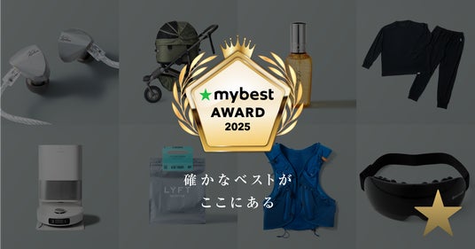 「これだ!」と思えるモノに出会うと、毎日が少しだけ輝き出します。モノも情報も溢れる一方で、物価高などシビアな現実もある今、その「1つ」を見つけ出すのは簡単ではありません。だからこそマイベストは、あらゆる商品を公平な視点で忖度なく、 ただ「あなたにとってのベストは何か?」を探すために、 無数の選択肢を一つひとつテストし本質的な価値を追求し続けています。「mybest AWARD」は、「買ってよかった」という満足感のために選び抜いた、私たちの「答え」が詰まった場所です。驚くほどの進化を遂げた定番アイテムから、 まだ知られていない隠れた名品まで。 あなたの生活を彩る「ベスト」を見つける参考にしてください。