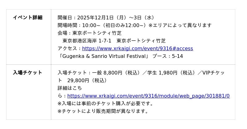 株式会社Gugenka(代表取締役CEO 三上昌史)は、2025年12月1日(月)~3日(水)に東京ポートシティ竹芝で開催される国内随一の業界カンファレンス「XR Kaigi 2025」にエキスポブース出展することをお知らせいたします。