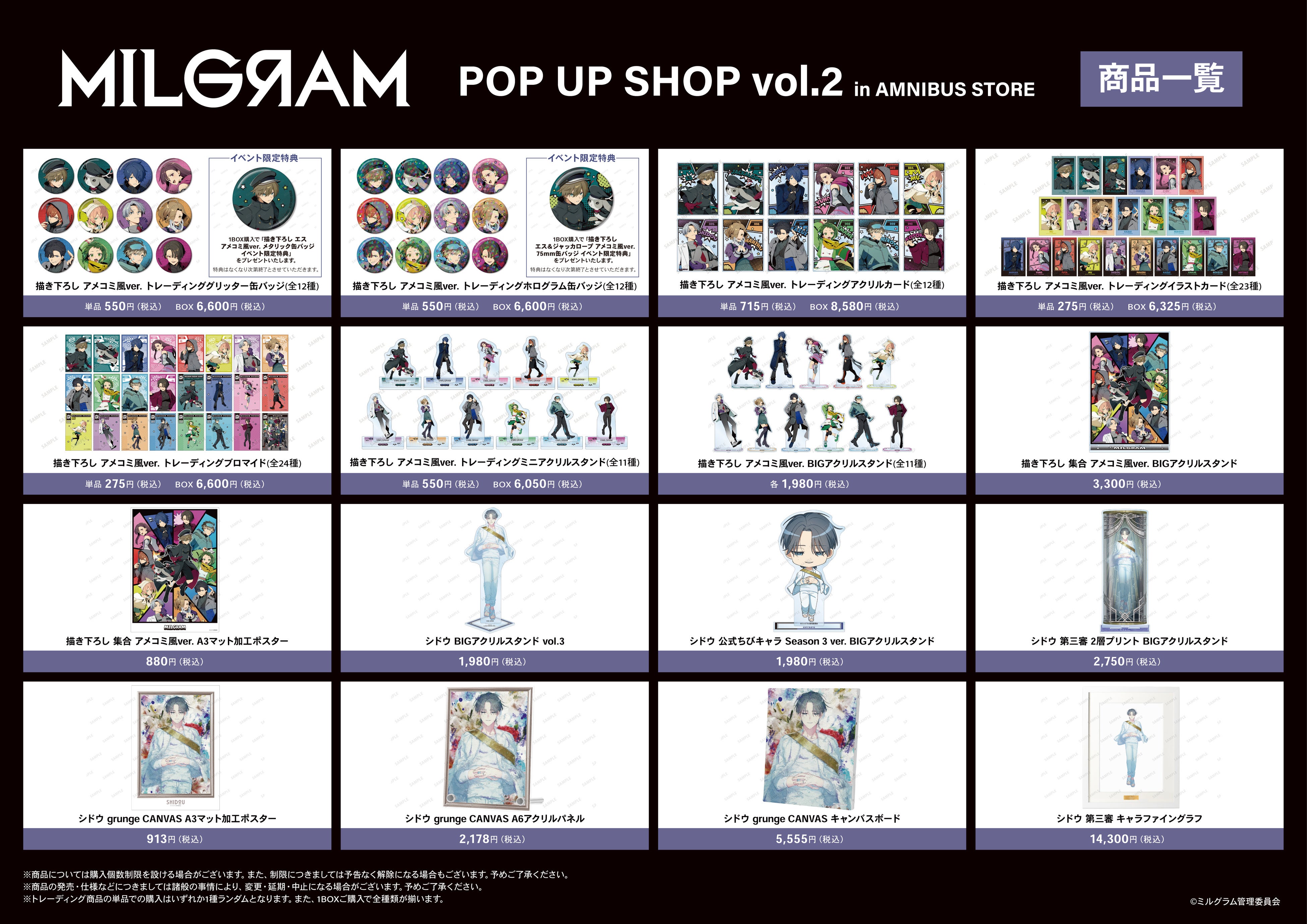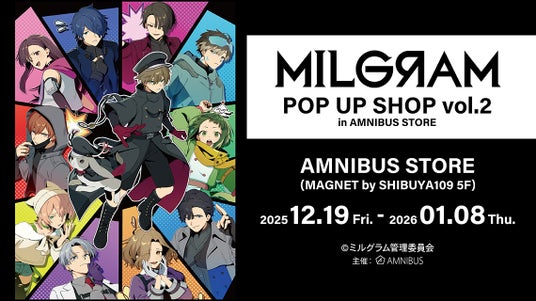 2025年12月19日(金)より「AMNIBUS STORE」にて「『MILGRAM -ミルグラム-』 POP UP SHOP vol.2 in AMNIBUS STORE」の開催が決定いたしました。
