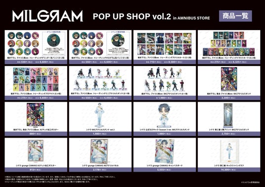 漫画・アニメのオリジナルグッズを販売する「AMNIBUS STORE」を運営する株式会社アルマビアンカ(本社:東京都中野区、代表取締役:坂井智成)は、この度、「『MILGRAM -ミルグラム-』 POP UP SHOP vol.2 in AMNIBUS STORE」を開催いたします。