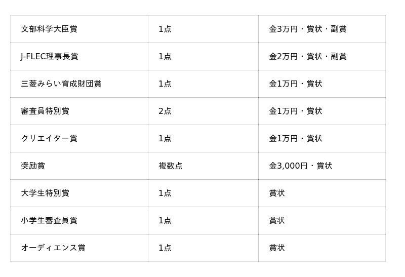 文部科学大臣賞、ゆうちょ銀行賞ほか、栄えある賞を決定!J-FLEC理事長賞は、安藤理事長より授与。小学生審査員・会場投票・ライブ配信を導入した多世代参加型コンテストとして発展
