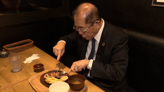 リーダーの素顔に迫る「リーダーの○○」。今回は下村会長の健康法に密着。会長のある日の昼食に同行。行きつけの飲食店に向かった会長が注文したのは...ステーキ!焼き立てのステーキを10分で食べきった。週1回はステーキを食べるという。