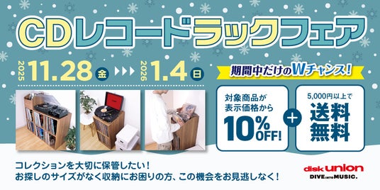 レコードやCDを愛する皆様に朗報です!ディスクユニオンの店舗、オンラインショップではレコードやCD専用の収納ラック品を対象とした『CD・レコードラックフェア』を開催中!