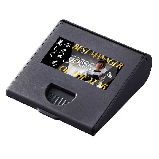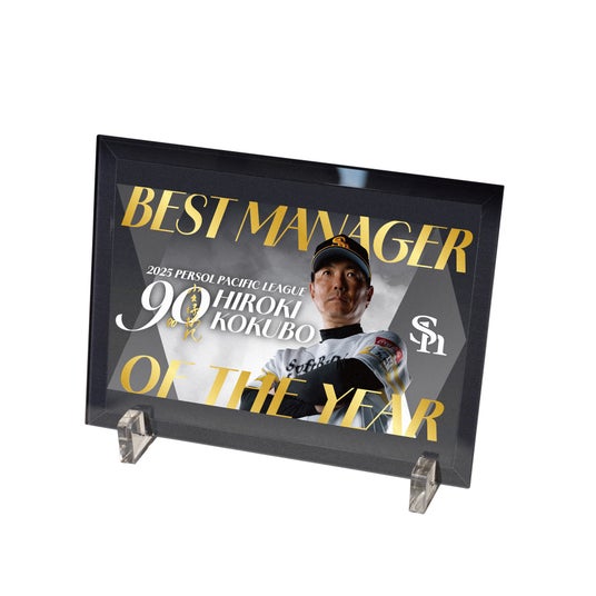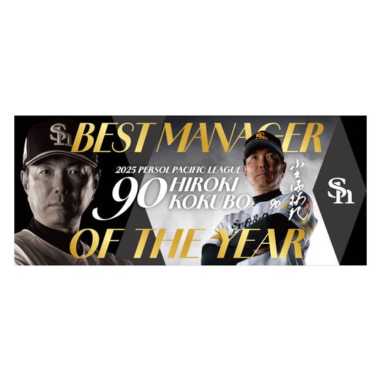 2025年度パ・リーグ最優秀監督賞が11月10日(月)に発表され、2年連続21度目のリーグ優勝に導いた手腕が評価され、小久保裕紀監督が2年連続で選出されました。記念グッズでは、重厚感のあるゴールド×黒のシックなデザインで、2年連続受賞の貫禄を表現しました。
