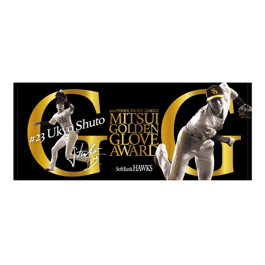 2025年シーズンの守備のスペシャリストに贈られる「第54回三井ゴールデン・グラブ賞」が11月12日(水)に発表され、ホークスからは二塁手部門で牧原大成選手、外野手部門で周東佑京選手が選出されました。記念グッズでは、「三井ゴールデン・グラブ賞」の通称である「GG」の文字を大胆にあしらいつつ、印象的な守備のシーンを取り入れたデザインで仕上げました。2人の直筆サインが入ったメモラビリアも数量限定でご用意しています。