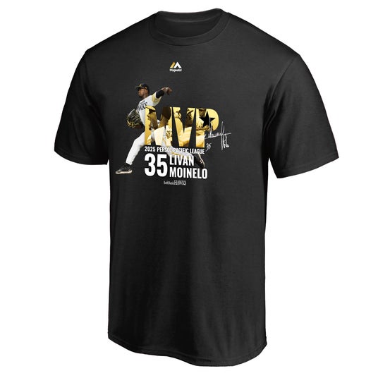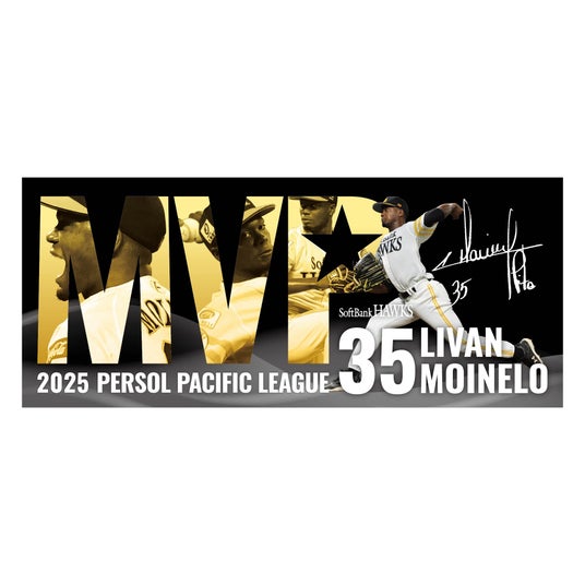 「NPB AWARDS 2025 supported by リポビタンD」にてモイネロ投手の2025パ・リーグ最優秀選手賞(MVP)受賞が発表されました。記念グッズには、ゴールド×黒の配色で記念感を出し、MVPの文字内にモイネロ投手のさまざまな表情をデザインしました。