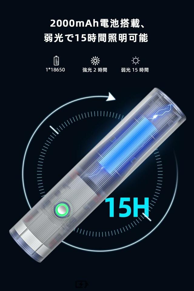 5モード切替と2000mAh電池で長時間&幅広い使用に対応可能!