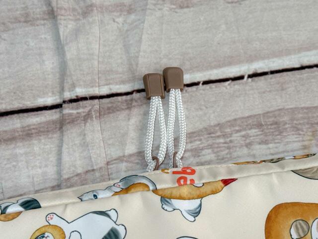 機能面での推しポイントは、中綿入りのしっかりとした作りに加えて、サイドについている持ち手。持ち運びに便利です。