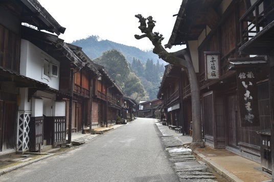 森に囲まれた中山道の宿場町・妻籠宿の町並み((公財)妻籠を愛する会)