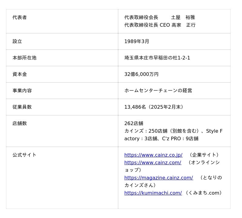 <株式会社カインズ 概要>