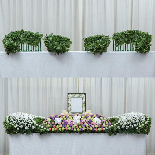 4)祭壇中央にtypeH(旧「だれdemo花祭壇」)を組み合わせると、ライン祭壇が完成。
