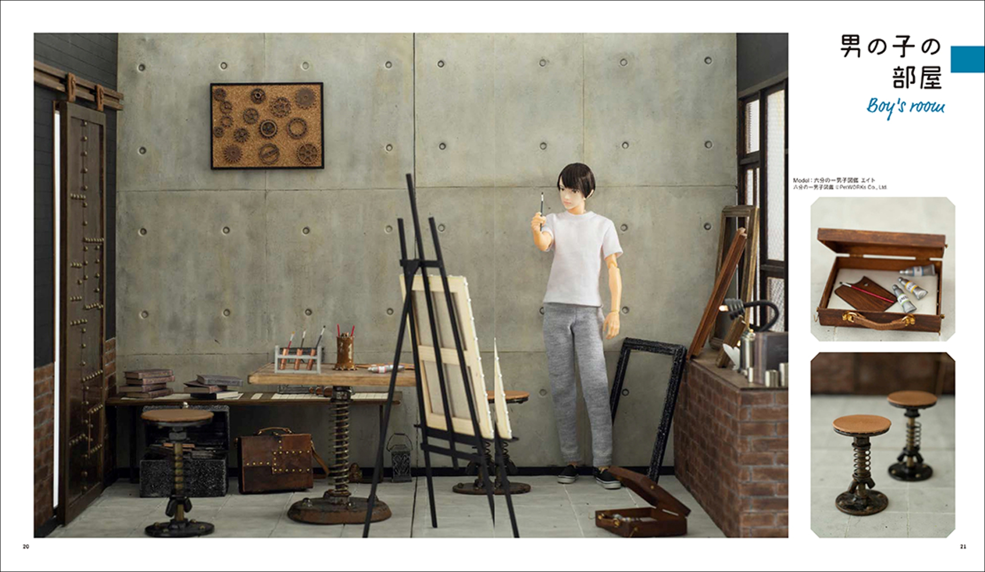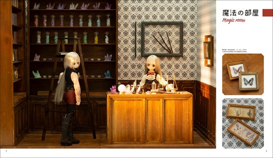作品をワンランクアップさせ、SNSなどで「映える写真」を撮るために必須となる背景や小物の制作、またバリエーション豊かな4つのテーマ部屋の作り方と、それに合わせた小物の約60種類のレシピを網羅しており、ドール・ミニチュア愛好家の創作意欲を刺激します。