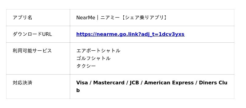「NearMe」は、独自のAIを活用した最適なルーティングで、出発地から目的地までの移動をドアツードアで結ぶタクシーのシェアサービスです。その中でも、空港とその周辺の都市部を結ぶ空港送迎型の『エアポートシャトル』は、2019年8月のサービス開始から、 多くの方にご利用いただき、累計予約人数125万人※1を達成しました。現在は、全国16の空港※2(羽田空港、成田空港、伊丹空港、関西空港、新千歳空港、中部国際空港、福岡空港、那覇空港、旭川空港、帯広空港、青森空港、仙台空港、静岡空港、南紀白浜空港、徳島空港、北九州空港)と、空港周辺の都市部でご利用いただくことができます。対象エリアであれば、出発地となるご自宅から空港、そして空港から最終目的地まで一気通貫でつながるため、公共交通機関の乗り換えがなくなるなど、ストレスフリーな移動体験を提供することができます。また、貸切送迎サービスや、東京都と千葉県全域のゴルフ場と東京都23区内を結ぶゴルフシャトルなど、シチュエーションに応じて様々な移動のニーズに対応するための各種サービスを展開しています。