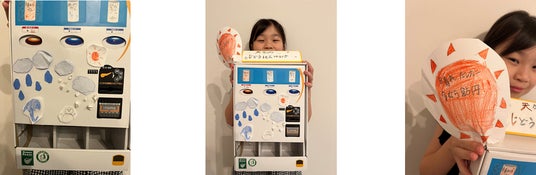 地球温暖化による異常気象を受けて、農家さんやスキー場、遠足の日など、みんなの「天気の願い」に応えられる「天気の自動販売機」を考えました。おじさんの畑が雨不足で作物が枯れてしまったことを知り、「天気を届ける仕組みがあったらいいな」と思って作りました。