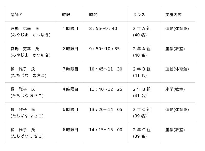 中学校3年生の体育理論の学習に先がけ、その内容を事前に啓発する目的で中学校2年生を対