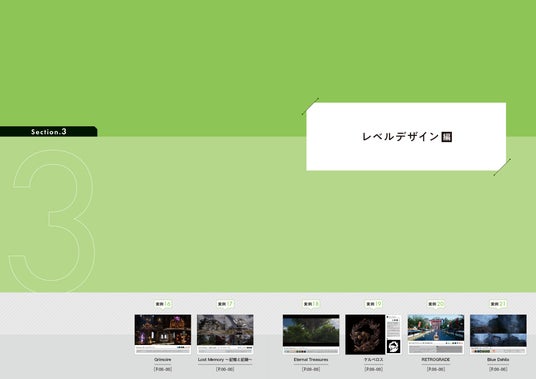 アニメーターやエフェクトアーティスト、コンポジターは基本的にデモリールが必須となり、ポートフォリオは必ずしも必要としないからです。本書は、キャラクターモデラー、背景モデラーに加え、レベルデザインのポートフォリオも掲載しています。レベルデザインとは、ゲーム開発においてプレイヤーが実際に体験するステージやマップ、進行の流れを設計する作業のことを指します。