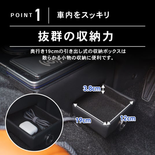 ハイエース 200系専用 LEDコンソールボックス。タイプA、タイプCシガーソケットを完備。夜も安心のLED搭載。引き出し式の収納ボックスは散らかりを一瞬で解決!スーパーGL/DX対応