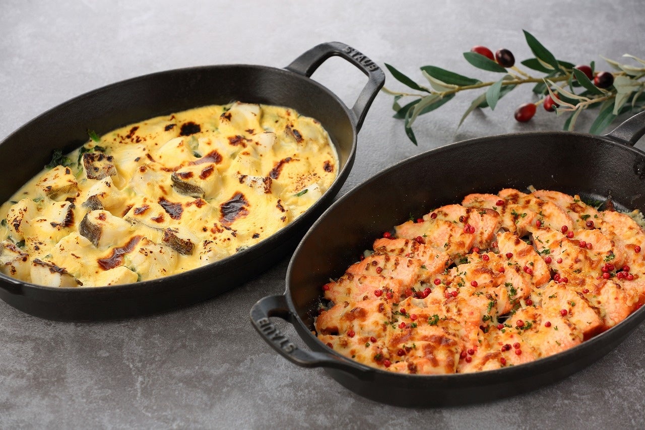 真鱈とほうれん草のグラチネ(左)・サーモンのマスタードチーズ焼き(右)