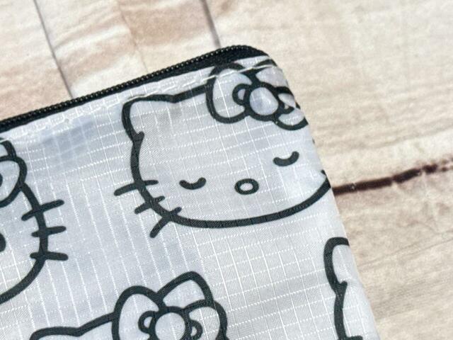 ホワイトにブラックカラーのキティちゃんのお顔の総柄デザインがキュート!モノトーンが基調なので、子供っぽくならず、大人が持ちやすい印象です。