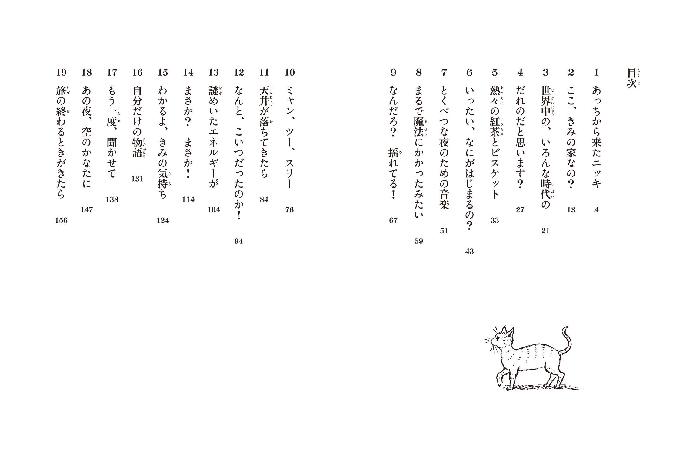遠くから旅をしてきたねこのニッキが、ある新月の夜、ミャルル・ペローと名乗る銀色ねこに出会い、不思議な靴のミュージアムに案内されます。そこには古今東西の靴がいっぱい! 音楽に合わせて靴たちが誰も履いていないのに踊り出し、にぎやかなダンスパーティが始まります……。