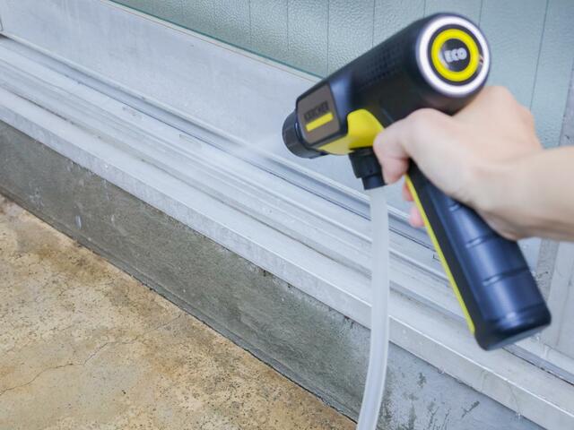 細かなチリが多く、掃き掃除ではなかなか綺麗になりきらなかったサッシも、これなら水で汚れもチリも吹き飛ばせてとても楽!