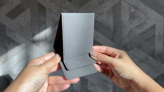 クルッとひっくり返したら、滑り止めがついている面に重ねてスタンドのかたちにすればOKです。