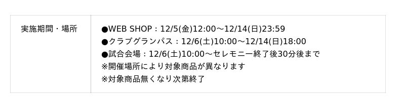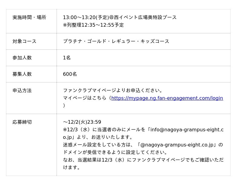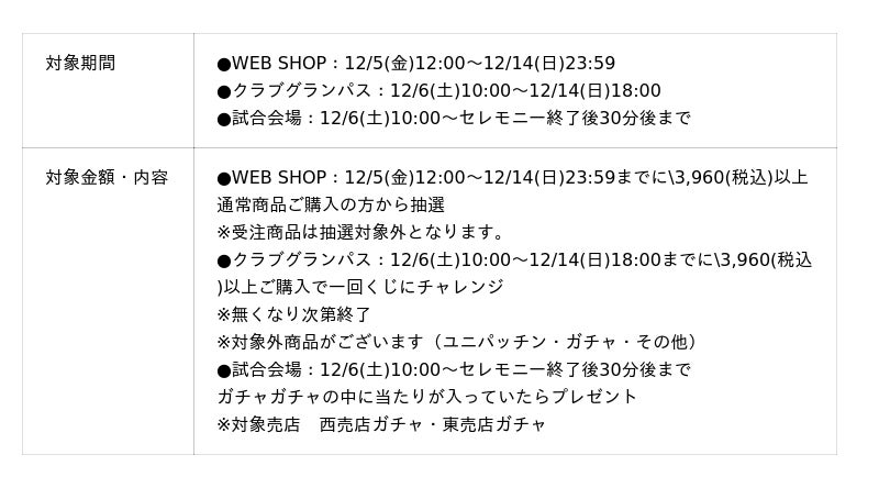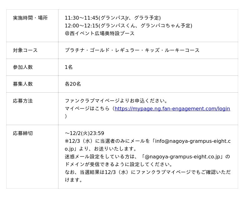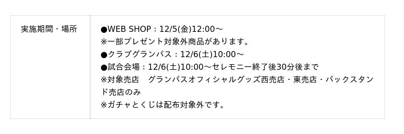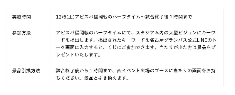 ※キャンペーン詳細は12/2(火)に名古屋グランパス公式HP アビスパ福岡戦試合情報ページにてご案内いたします。