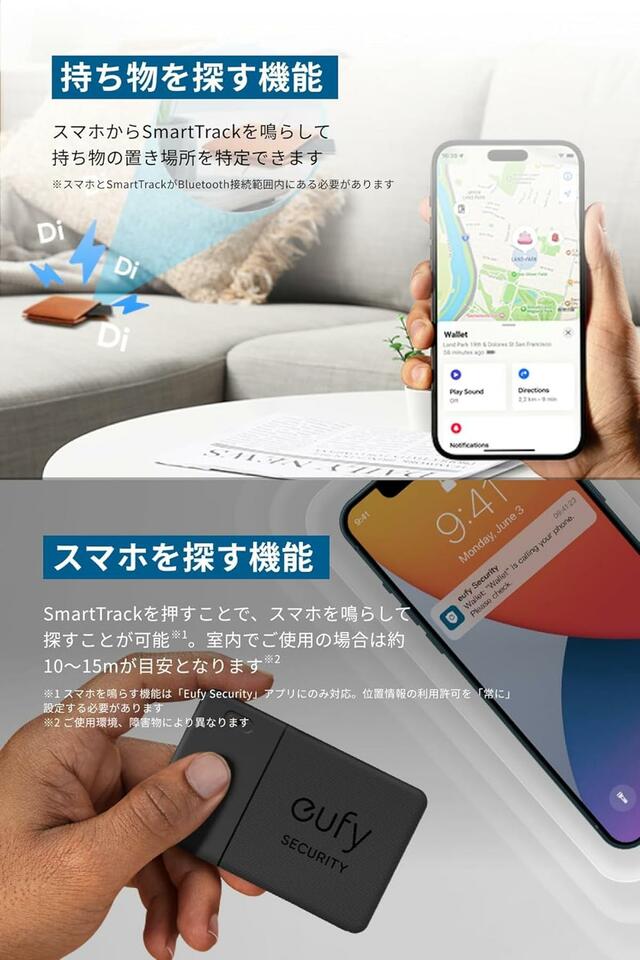 Appleの「探す」に対応しているため、お財布やバッグに入れておけば、iPhoneやiPadからSmarTrackを鳴らして、どこにあるかを瞬時に探すことができます。