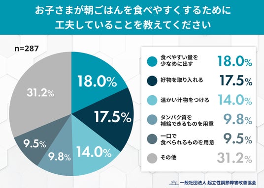 → 子どもの負担を軽減しながら、少しでも食べ進められる状態を整える工夫が多く挙げられました。「まずは食べられる分だけ」という柔軟な姿勢をとる家庭が多く、無理のない範囲で朝食を支える傾向が見られます。